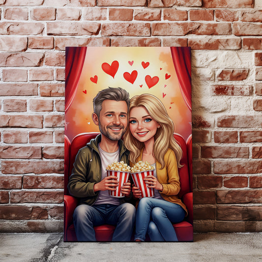 Karykatura pary w kinie – pomysł na prezent walentynkowy