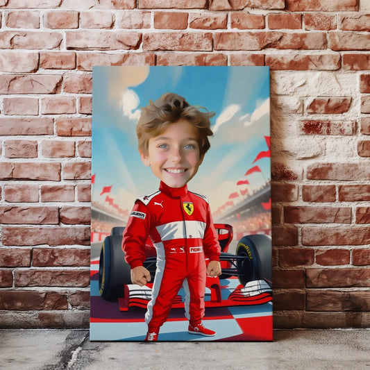Karykatura dziecka Formuła 1 – obraz personalizowany dla dziecka