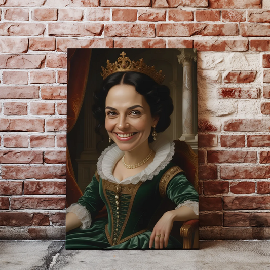 Elegancka Karykatura Królowej w Stylu Klasycznego Portretu Olejnego