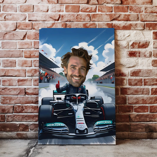 Karykatura w samochodzie formuła 1 - prezent dla fana F1