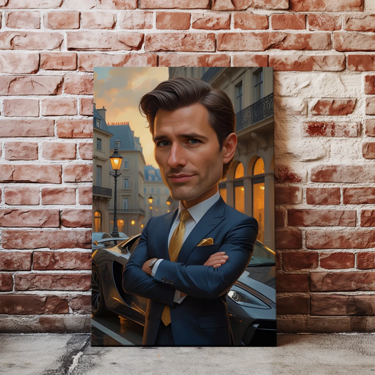 Karykatura z Samochodem w Stylu Olejnego Portretu da Vinci