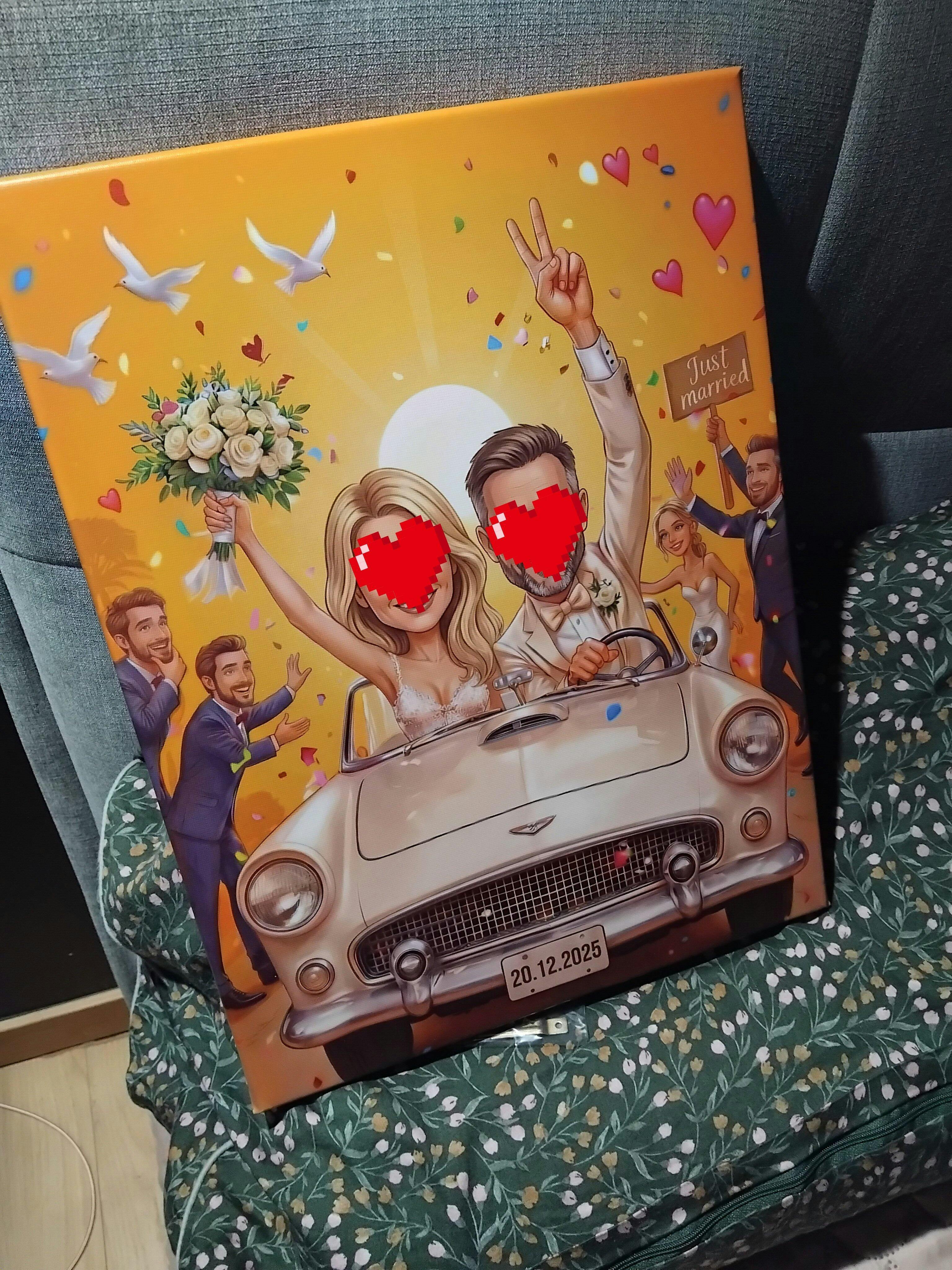 UWAGA! Możemy zmienić drobne rzeczy lub dodać np. cyfry, kolor marynarki, suknie, dodać znaczek na samochodzie innej marki ale nie realizujemy całkiem innych wytycznych typu; prosze o inny samochód, proszę o inne tło itp. Proszę mieć to na uwadze składając zamówienie!