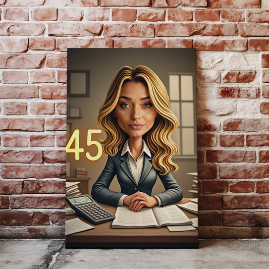 Personalizowany portret urodzinowy kobiety biznesu – obraz z cyfrą