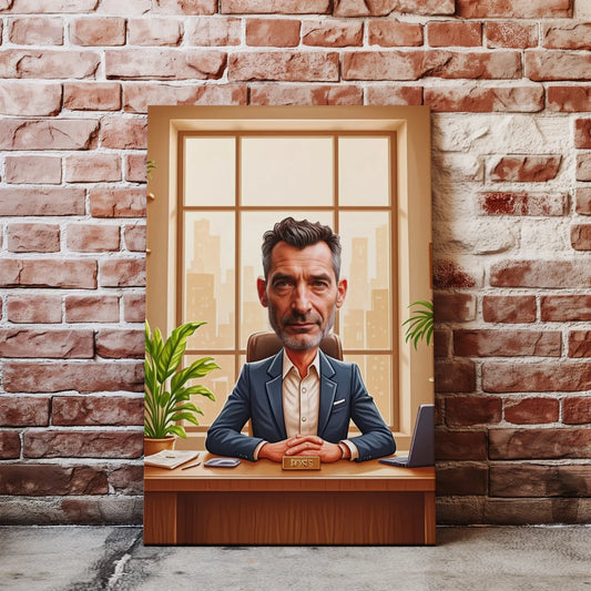 Karykatura na urodziny dla szefa – prezes w biurze z napisem