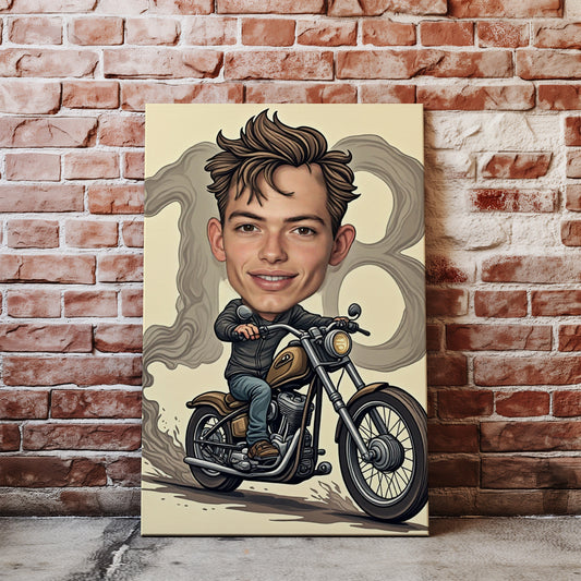 Wyjątkowy prezent na 18 urodziny – karykatura motocyklisty