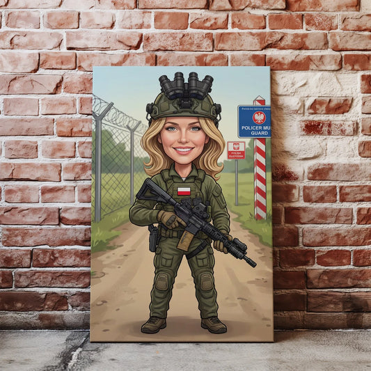 Pomysł na prezent jako straż graniczna wojsko - karykatura