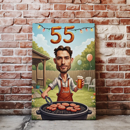 Karykatura Króla Działki – Prezent na 55 lub inne urodziny dla fana grilla