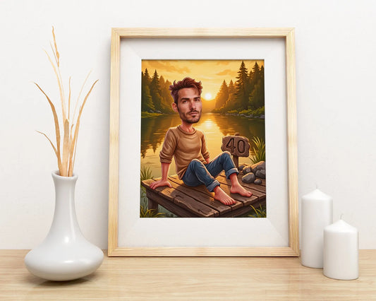 Personalizowany Portret Urodzinowy Mężczyzny nad Jeziorem