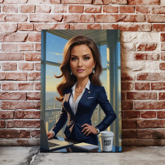 Portret kobiety jako CEO – elegancka karykatura szefowej