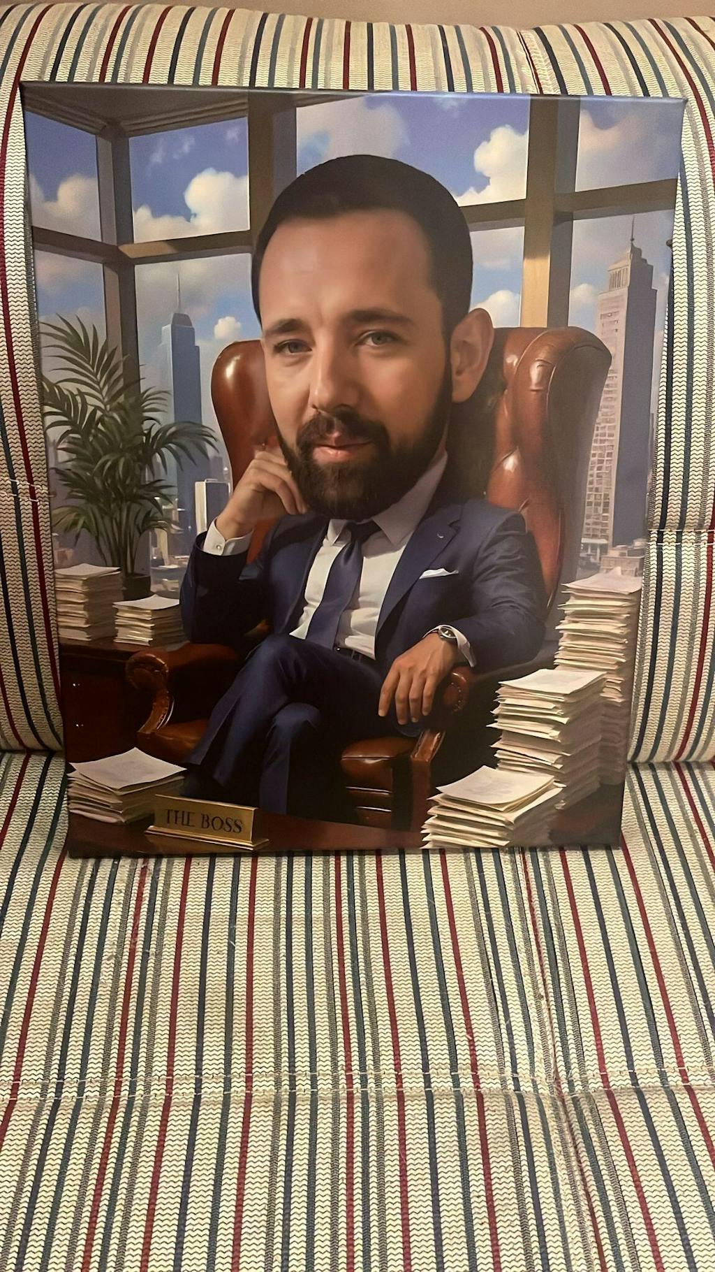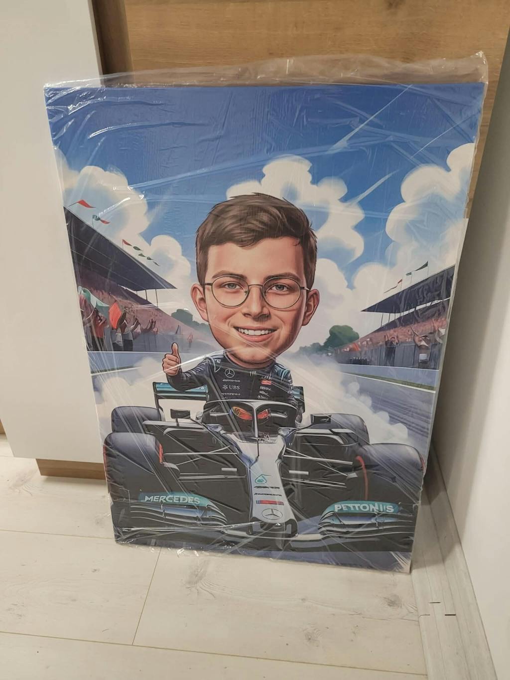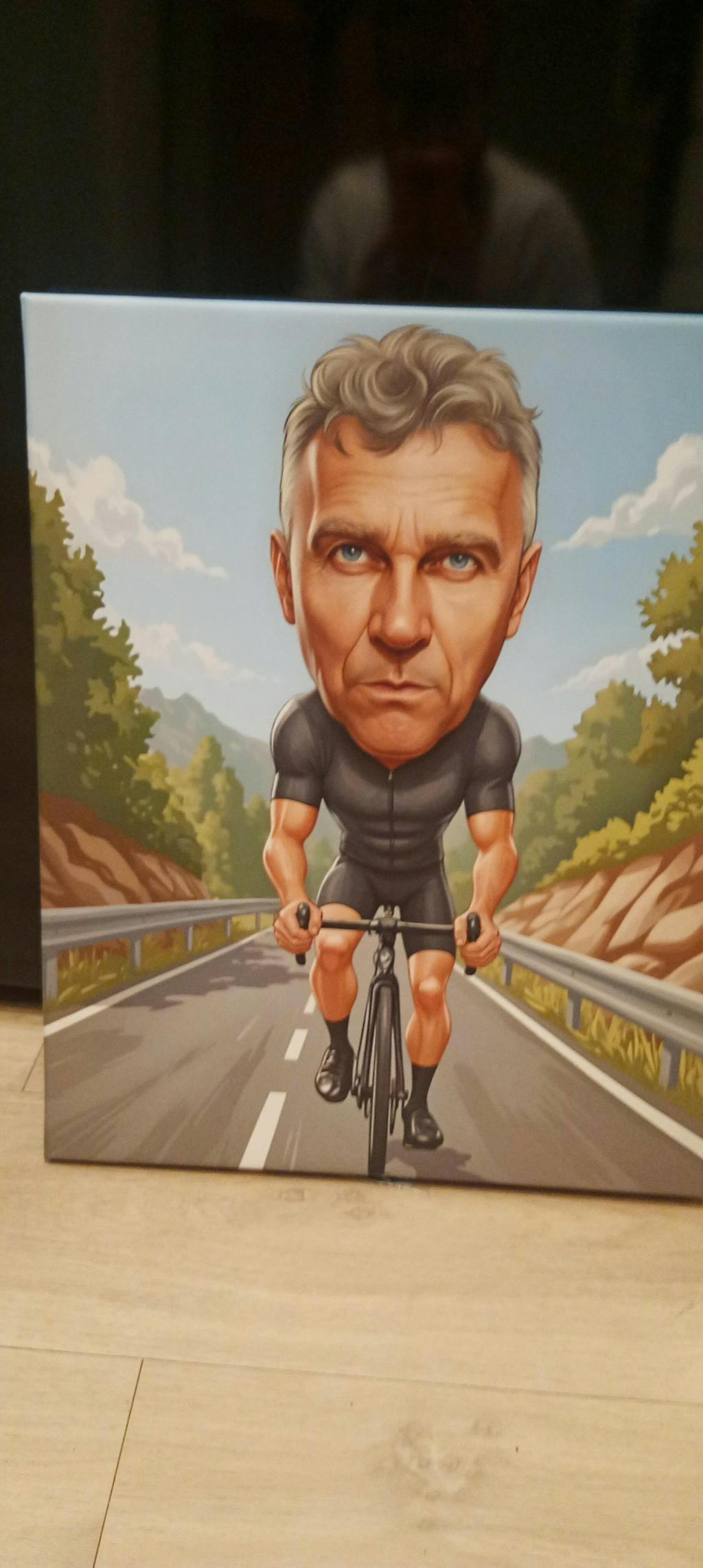 Zamówienie szybko zrealizowane, obraz dobrze zabezpieczony. Wcześniej dostaliśmy kilka wariantów karykatury do wyboru.
