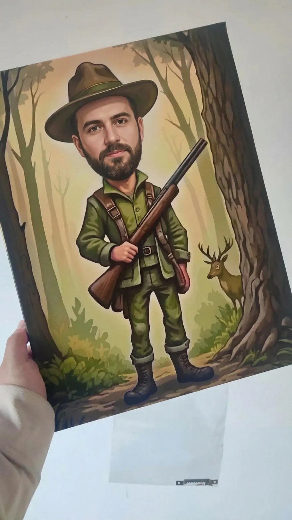 Personalized hunter caricature canvas for birthday gift Karykatura myśliwego